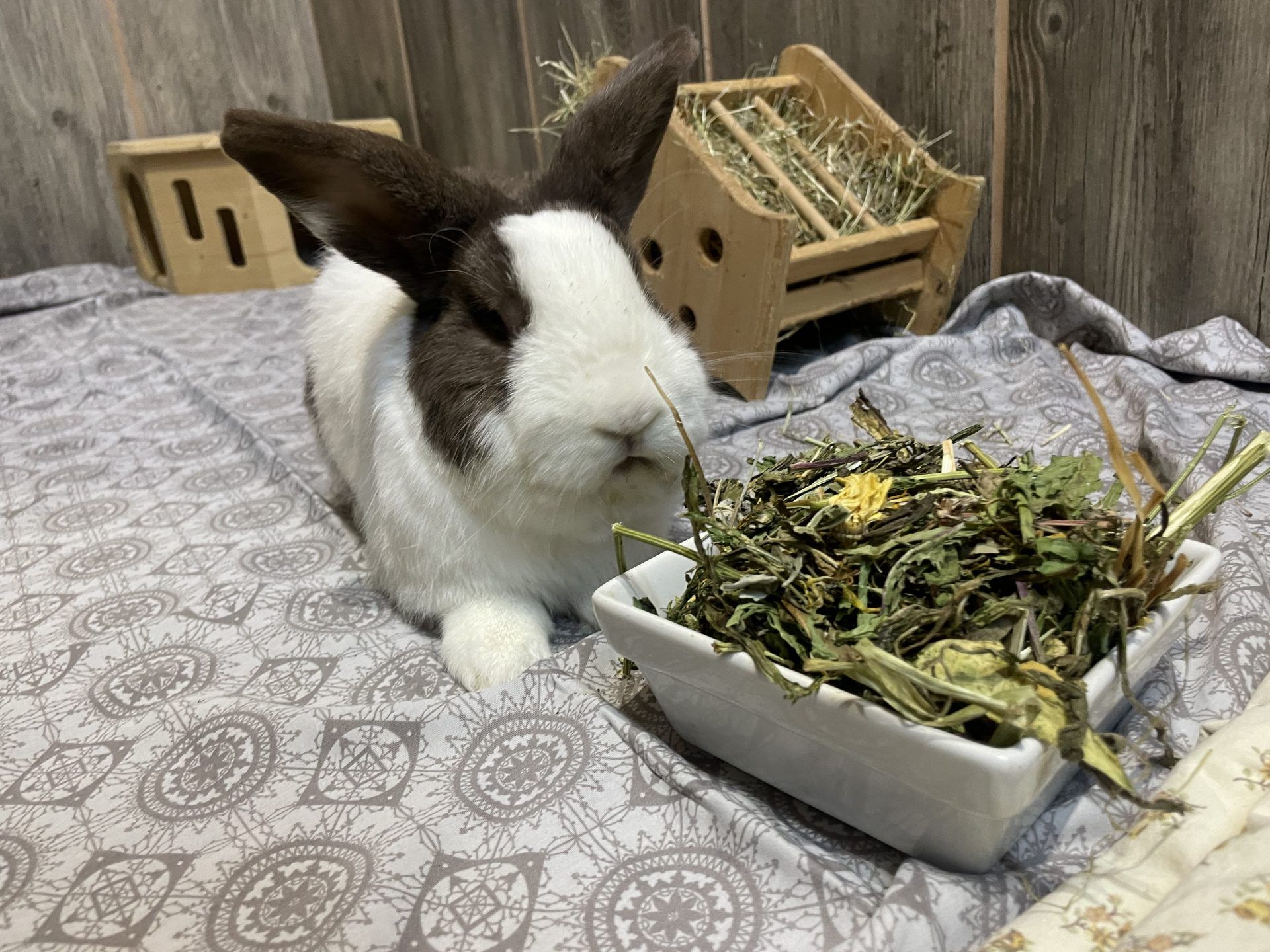 | Freitext | Fine ist eine kleine Diva. Sie ist sehr verträglich mit anderen Kaninchen, sollte aber einen Partner oder eine Gruppe bekommen, in der sie nicht zu viel Stress hat. |